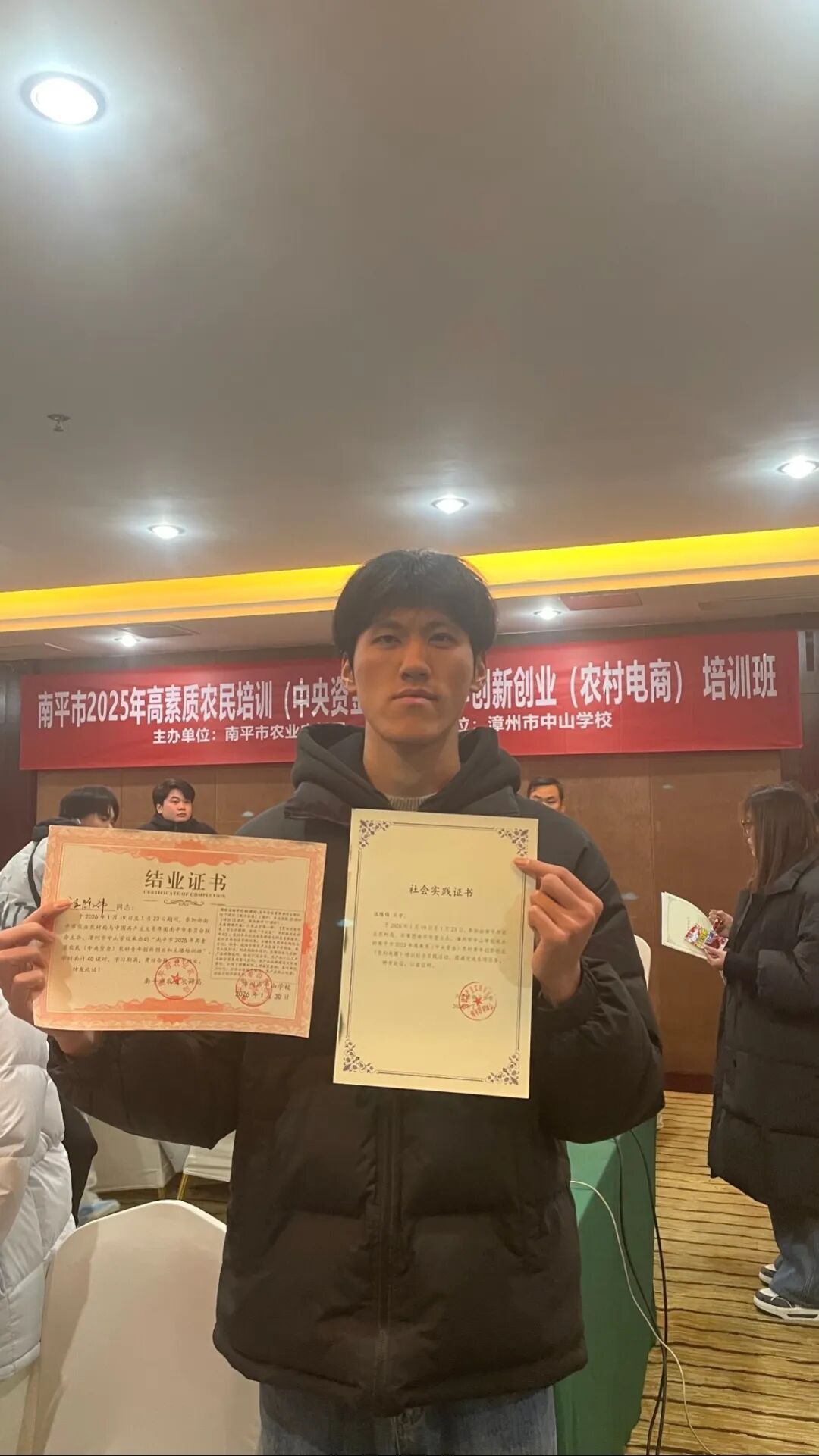 寒假期间,我参与南平市高素质农民农村青年创新创业培训,以“追寻领袖足迹,激发文化创新创造活力”为核心,系统学习乡土文化创新与乡村创业知识。培训中,我深入学习中央一号文件、南平文旅融合发展政策,参与朱子文化、武夷茶文化专题研讨。随后聚焦电商技能实操,掌握抖音、小红书运营技巧,与队友完成武夷岩茶制作技艺短视频创作,并开展直播带货预演。实地研学走访旭雍茶叶茶山基地、武夷山科力兴种业公司,学习岩茶标准化种植、农产品良种选育知识;在五夫镇非遗实践基地,与本土博主交流新媒体传播经验。此次实践让我掌握电商运营、文创开发等技能,深刻体会到数字技能是乡村振兴的“新农具”。未来我将扎根南平,为乡村振兴贡献青春力量。