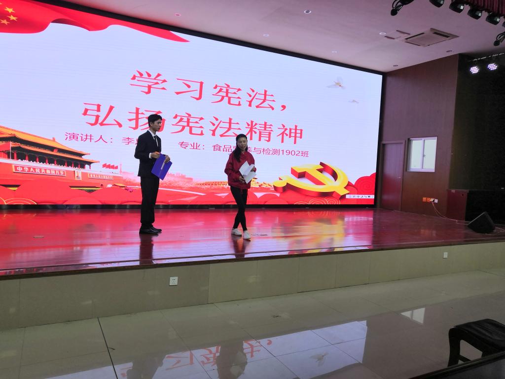 为深入学习宣传贯彻习近平新时代中国特色社会主义思想,认真落实中央关于深入学习宣传和贯彻实施宪法的要求,引导大学生自觉成为宪法的忠实崇尚者、自觉遵守者、坚定捍卫者,由院党委宣传部主办、院团委承办的“学宪法 讲宪法”主题演讲比赛决赛于9月26日在江南校区礼堂举行。