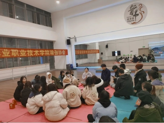 首先社团指导老师乐丽燕分享了她与瑜伽的故事,让大家充分认识和理解练习瑜伽对学生们身心的好处。其次乐老师为学生们连线了江西莲庐瑜伽研究院,其研究院院长助理Jenny老师为学生们分享了瑜伽的起源与内涵、瑜伽的主要流派、瑜伽的主要练习方法等方面帮助学生们建立对瑜伽的正确认知,并引用相关数据和真实案例分享了瑜伽对当代大学生的身心健康改善有积极的作用:例如改善体态;脊柱侧弯,含胸驼背;改善睡眠质量以及心理方面情绪波动起伏过大的情况。