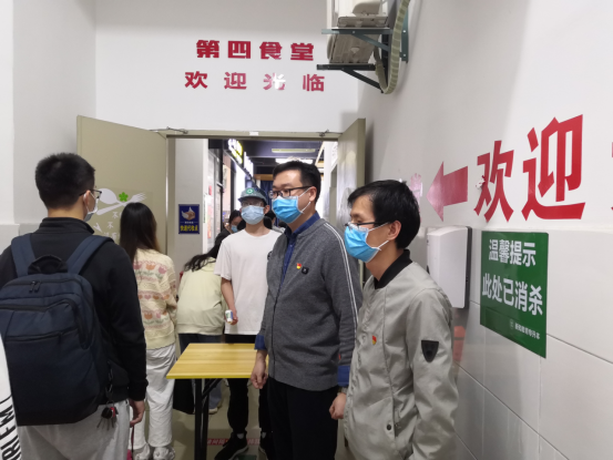 青春“红马甲”,暖心遍校园。团委党支部积极组织支部党员、团学干部和志愿者于每天早上7:40-8:20在教学楼、学生食堂、图书馆、行政楼等出入口处,提醒师生佩戴口罩,做好排队引导,保持安全距离,倡导隔位就座。在团委党支部积极推动下,疫情防控文明督导志愿服务工作现已实现常态化全覆盖,更好地展现党员本色、践行初心使命。