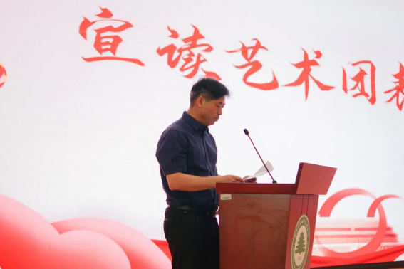 院党委副书记严绍裕宣读天麟艺术团表彰决定。本次共表彰16位“天麟艺术团优秀队员”、11位“天麟艺术团优秀干部”、6支“天麟艺术团优秀队伍”、8位“天麟艺术团优秀指导老师”。