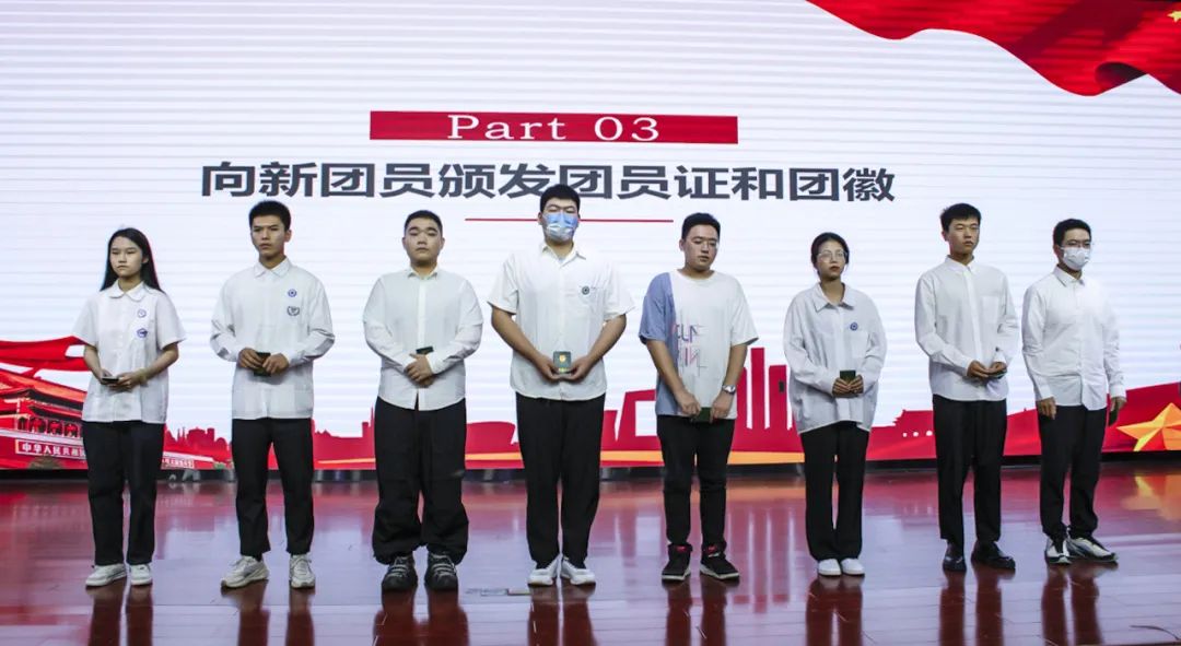 由各系团总支学生副书记向新团员颁发团员证和团徽。