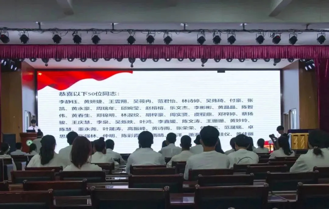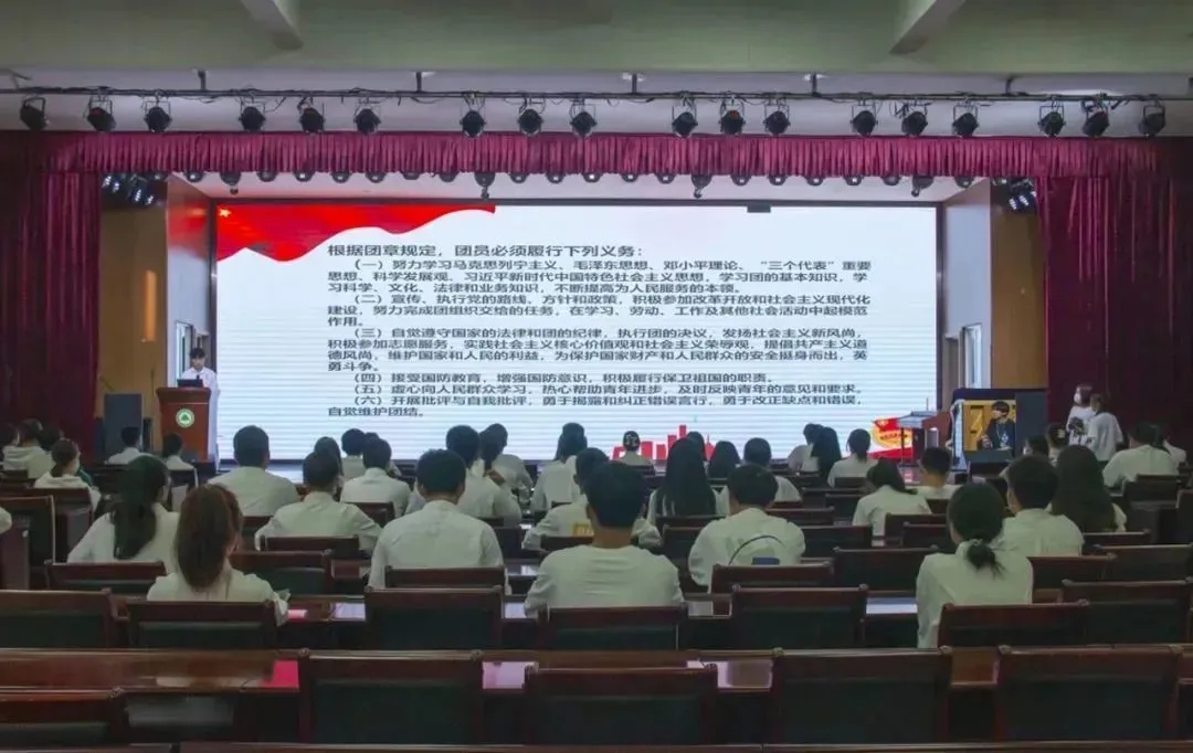 为深入学习宣传贯彻党的二十大精神,庆祝中国共青团成立100周年,进一步深化我院青年学子思想政治引领,充实我院共青团队伍,为团组织灌注新鲜血液,筑牢团员队伍的先进性,增强青年团员的荣誉感。共青团福建林业职业技术学院委员会于2022年11月29日在江南校区礼堂举办2022-2023学年第一学期新发展团员入团宣誓仪式。