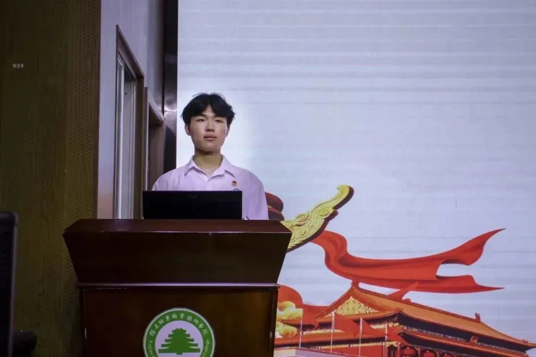 院团委学生副书记、院团委组织部部长陈文辉同学讲话,并对新团员提出希望与要求。他希望新团员们能够时刻牢记自己共青团员的身份,把个人的成长与成才融入到学院建设和发展的大局之中,与学院齐发展、共进步,争做新时代的青年先锋,以强烈的责任心和庄严的使命感为学院的发展贡献青春力量,展现出青年人的精神面貌,肩负起青年人的时代的重任,让青春焕发出更加绚丽的风采。
