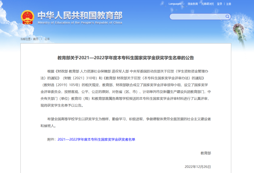 近日,教育部网站公布了《2021—2022学年度本专科生国家奖学金获奖学生名单》。其中,福建林业职业技术学院共有14名优秀学子获得2021—2022学年度本专科生国家奖学金。