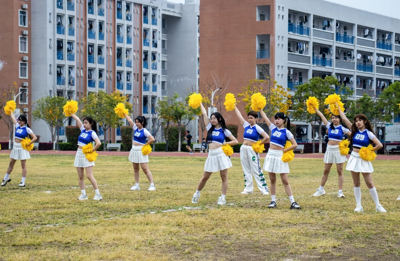 比赛中场休息时还有变身“足球宝贝”的艺术团啦啦队的同学们,她们用精彩的舞蹈为双方球队加油!