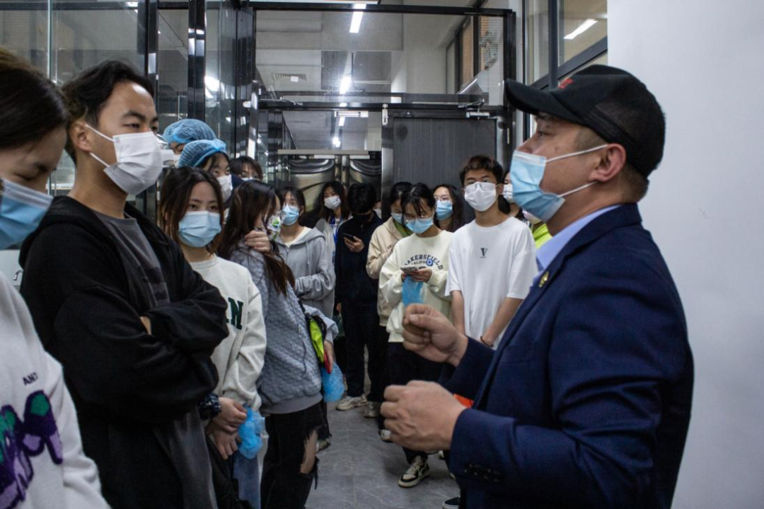 在签到后,50位学生代表统一戴好口罩,在后勤工作人员带领下,实地参观了食堂后厨加工间、备餐间、库房、米饭生产线、肉类集中加工中心等,详细了解了食堂辅料存储、餐具消毒、饭菜加工、食品留样等情况,对食堂的环境卫生和运营管理表达了高度认可和肯定。