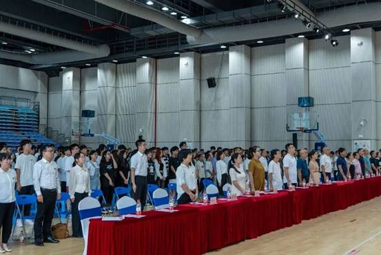 ▲全体师生起立齐唱国歌