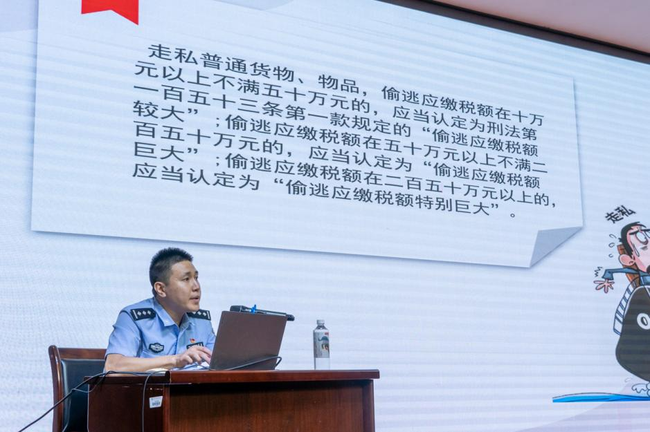 王炜警官将相关知识通过文字、图片及视频等多种方式向同学们进行讲解,内容丰富、案例生动,让同学们对于“什么是走私,哪些行为涉及走私犯罪,如何防范陷入走私陷阱”有了更清晰、更直观的认识。