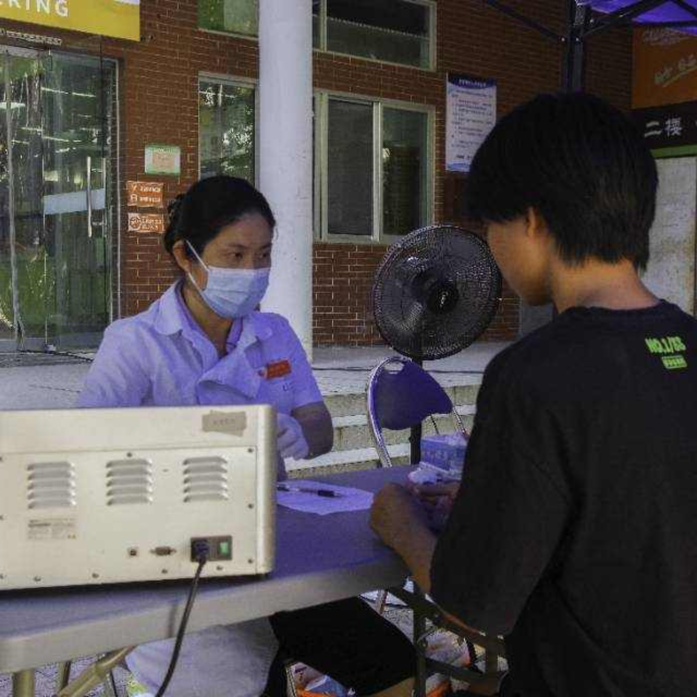 在献血区,前来献血的同学们纷纷献出自己的青春热血。尽管在献血的过程中有一些害怕,但更多的是因能帮助到需要的人而感到高兴。