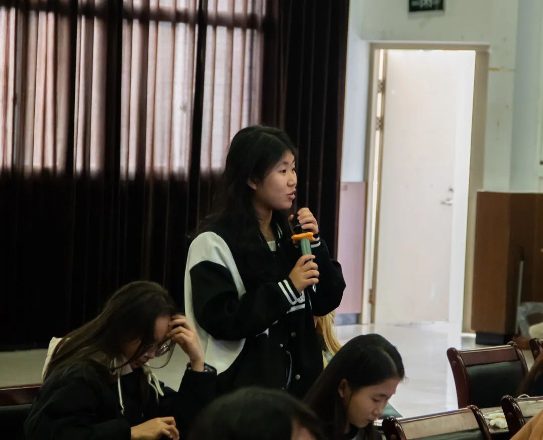 活动伊始,张慧老师从“什么是非遗?你所知道的非遗有什么?"两个问题作为引导语,不仅快速充分地调动了学生积极性,还十分自然引入本次讲座主题,让同学们在积极回答问题,分享自己家乡的非遗的同时对非遗产生了浓厚的兴趣,也为后续学生更加深入了解“非遗”做好铺垫。随后张慧老师向同学们讲述了华阴老腔、四平戏和南平各地传统小吃等非遗文化相关课程,帮助同学们具体地了解到了更多的南平当地非遗文化。