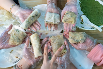 清明时节雨纷纷,飘香青团惹人馋。在刚刚结束的活动里,同学们做青团,吃润饼。品尝春天的清新,体会春日的美好。活动伊始,主持人介绍完活动内容及流程后,同学们立马投入到美食的制作当中。