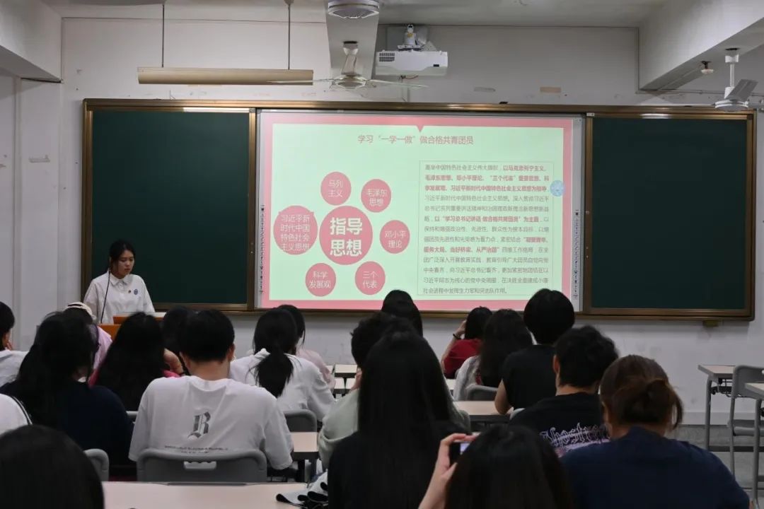 第二讲团课培训由院团委组织部部长欧晓钖同学和经济管理系团总支组织部部长洪思达同学一同解读了《中国共产主义青年团章程》,增强入团积极分子对共青团的认识。