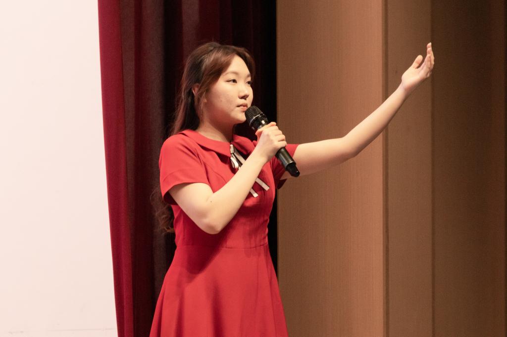 ▲朗诵《永不消逝的声音》——丁慧琳、汪吕蔚、陈佳颖