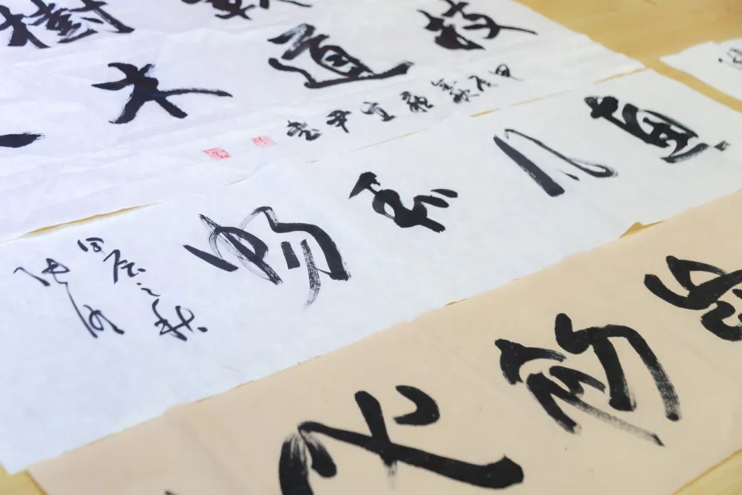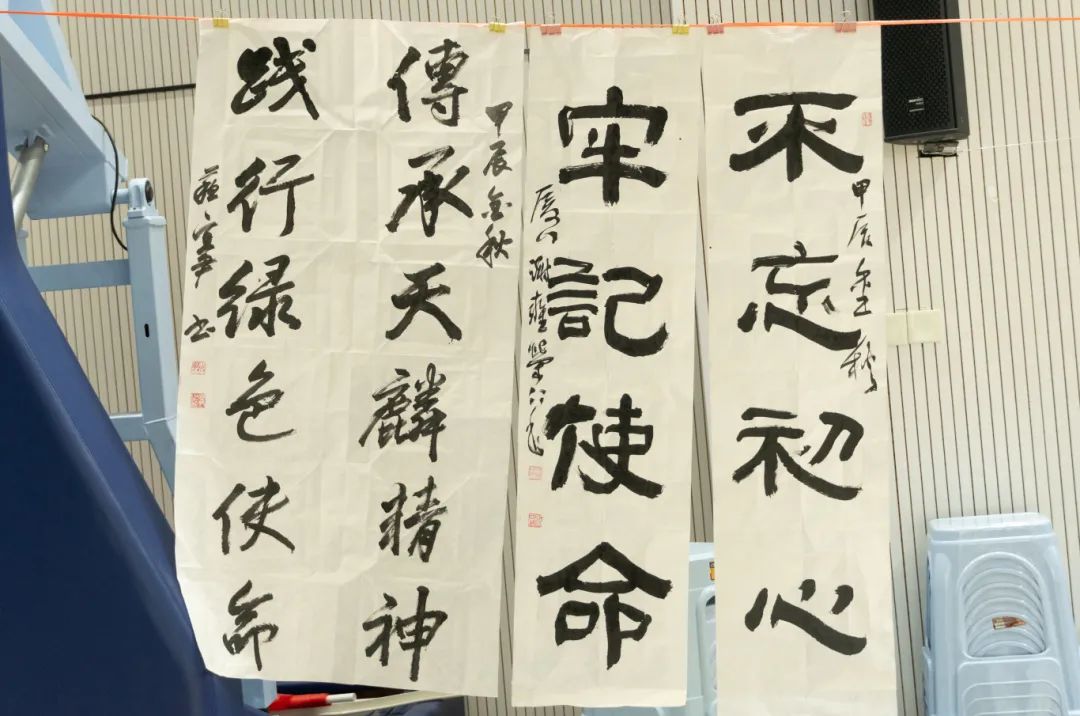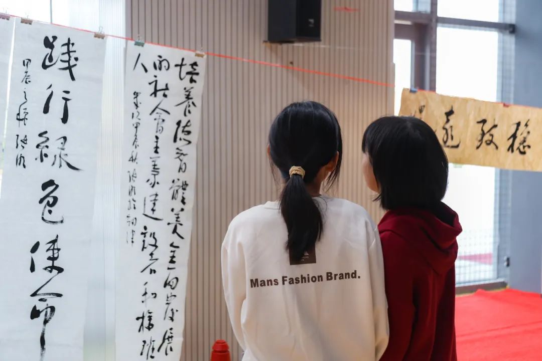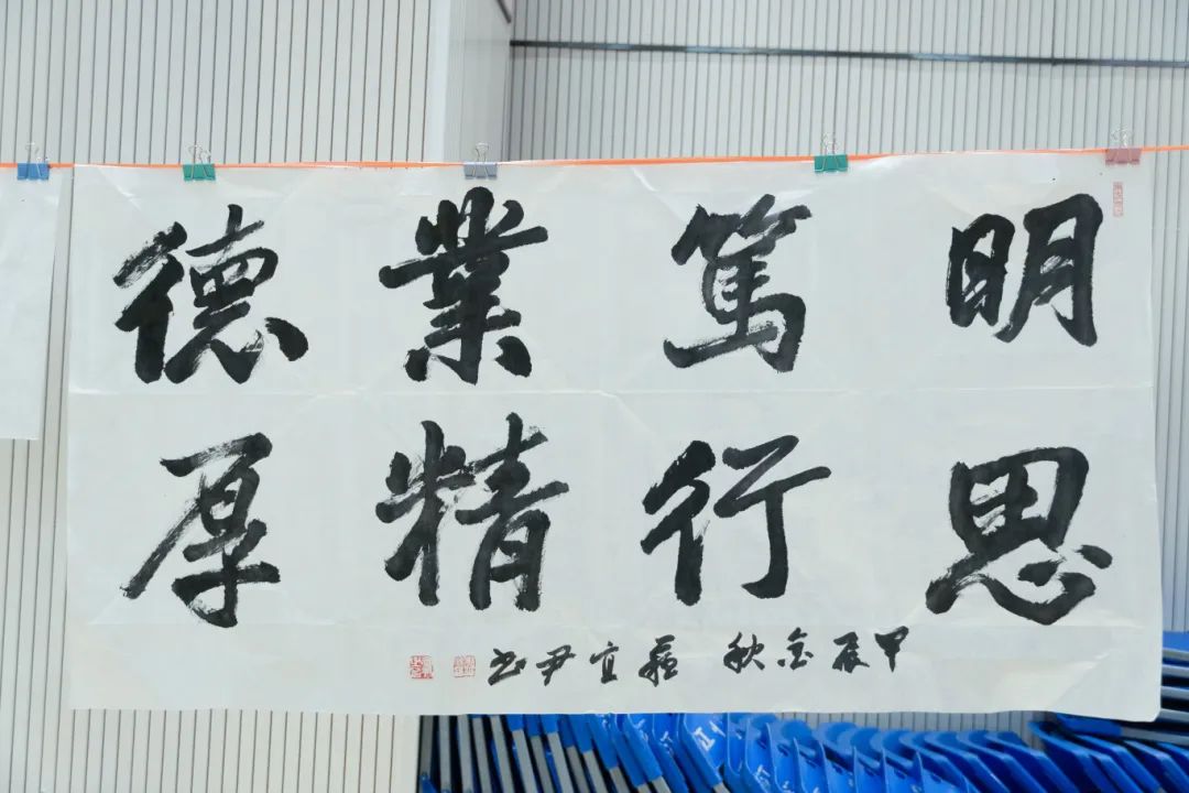 此外,书画家们还现场创作了多幅以校训、治学、修身、自勉等为主题的书画作品,这些作品不仅是对学校文化的传承和弘扬,更是对学生们成长的鼓励和鞭策。一笔一画,独具匠心,既是一种视觉的享受,也是一种心灵的洗涤。