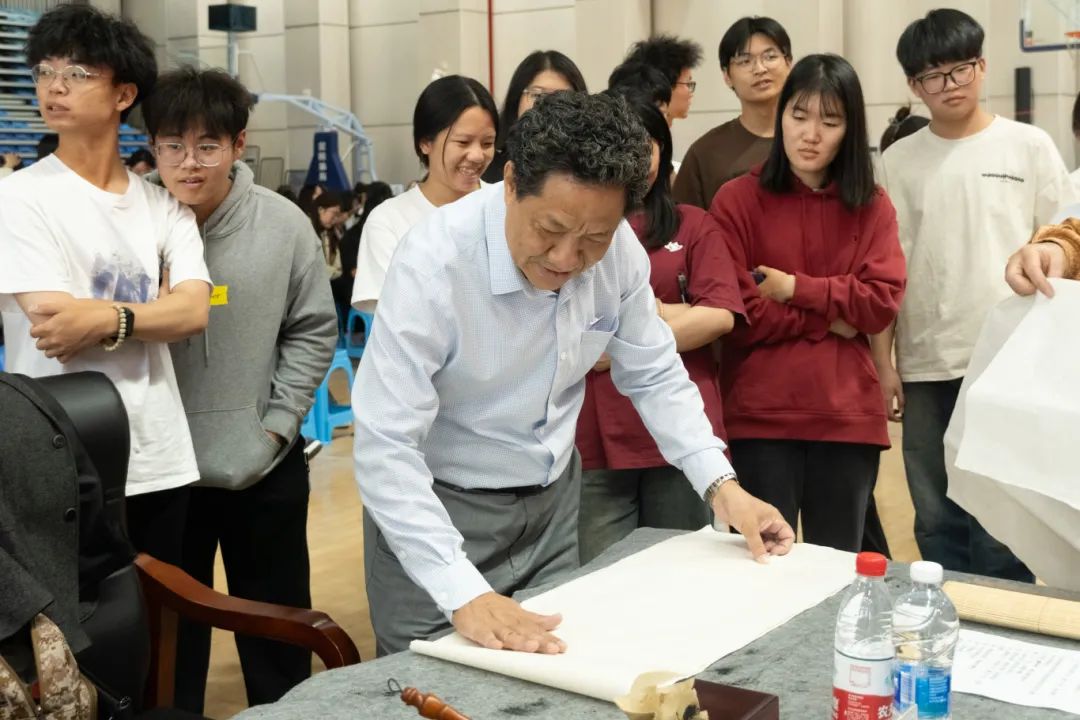 本次活动特别邀请了学院校友总会副会长兼厦门校友会会长张瑞清,中书协会员、厦门民盟美术院原院长、厦门市人大书画院副秘书长苏宜尹,福大工艺美院原美术教授、中美协会员曾华伟,中书协会员兼厦门画院原专职画家谢荣仁,南平市书协副主席、福建省书协会员、中国书协南平考级基地执行主任张明,厦门市人大书画院执行秘书长、《中国报道》海峡两岸经济栏目福建联络处主任、厦门市美术家协会会员连达洪及多位福建省在延书画家莅临现场挥毫泼墨,带领我院学子一同感受中国传统书法及绘画的魅力。我院副院长、校友会总会会长李肇锋,党政办公室主任陈政,工会常务副主席廖世建,团委副书记雷栩艺(主持工作)及学生代表共300余人参加本次活动。