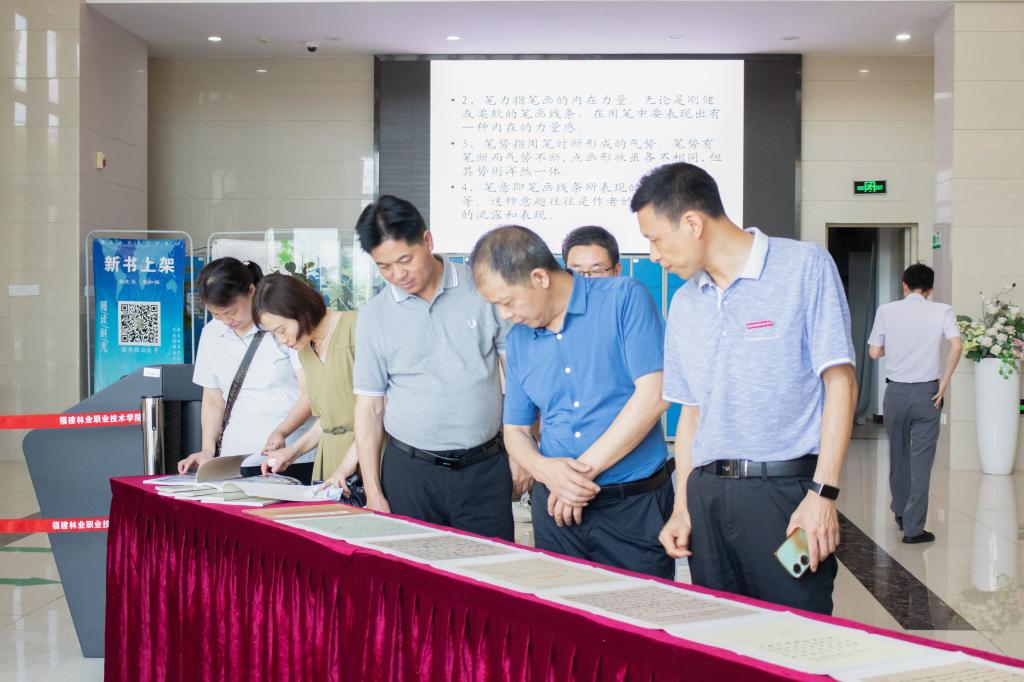 5月21日至30日,由福建省书法家协会指导,福州市书法家协会、福州市硬笔书法家协会、福建林业职业技术学院主办,院图书馆、院团委、福州九龙山书社承办,院学生社团联合会、院书画协会协办的“相濡以墨”闽都十锐书法巡回展暨2025年书法艺术进校园活动在我院图书馆一楼举办。学院领导班子成员、相关处室系部负责人、院书法协会学生及对书法感兴趣的师生慕名到场参观。