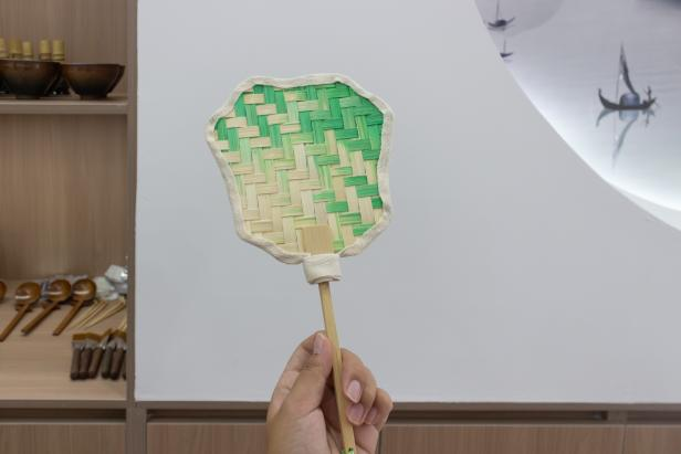 工作人员首先为大家讲解了竹编的历史与文化,并逐步演示了编织的基本技巧。起初,柔韧的竹篾在指尖“调皮”舞动,但在工作人员耐心地指导与帮助下,大家逐渐掌握要领,经纬交错的扇面慢慢成型。竹篾摩擦的沙沙声成了绝对的主角,应和着指尖的舞蹈。