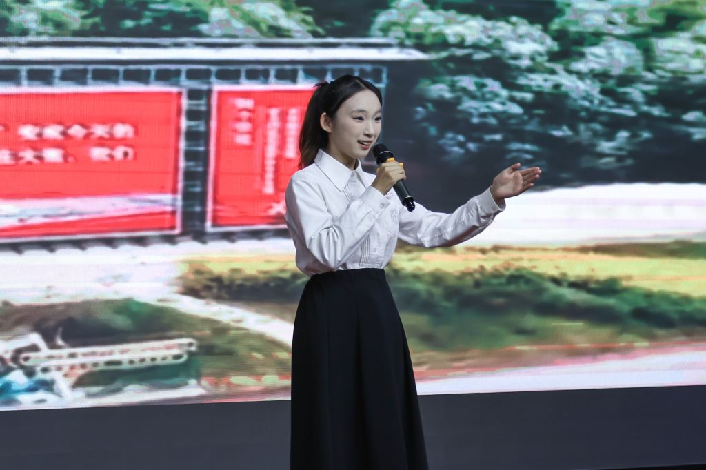 刘贝贝选手以“福籽同心爱中华”为核心,借黑土地、戈壁等场景开篇,讲述草原牧民收养孤儿、都贵玛坚守誓言的故事,串联民族文化交融图景,解读“石榴籽”寓意。她用生动且饱含深情的语言,将五十六个民族喻为紧密相连的“福籽”,烘托出中国福籽对民族团结的珍视、为祖国发展奋斗的赤诚之情。
