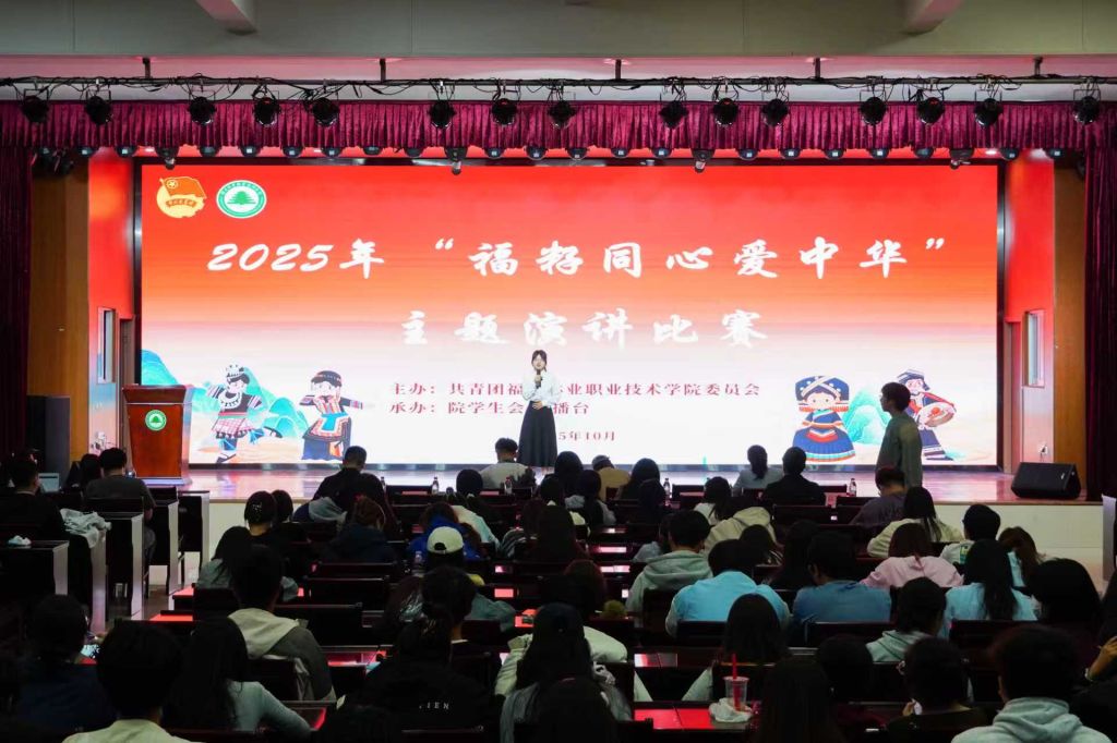 为深入贯彻落实习近平总书记关于加强和改进民族工作的重要思想和论述,促进两岸青少年学生铸牢中华民族共同体意识。由共青团福建林业职业技术学院委员会主办,院团委广播台承办的“福籽同心爱中华”系列活动之主题演讲比赛,于2025年10月29日晚上,在江南礼堂圆满落幕。