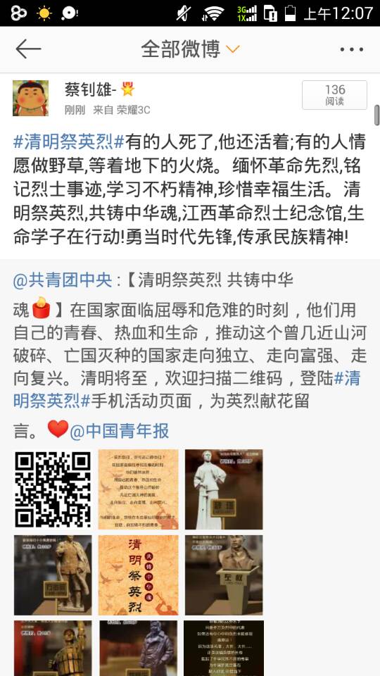4月3日,交通工程系各团支部在新浪、腾讯微博平台发起#清明祭英烈#话题讨论,发动团员青年积极参与,留言写下对英烈的缅怀和敬仰,在网上开展了以“清明祭英烈 共铸中华魂”为主题的宣传活动。
