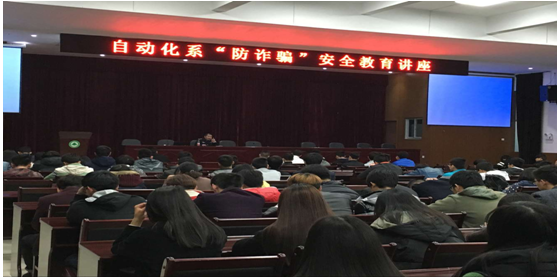 4月初在江南校区礼堂,自动化工程系开展了关于“防诈骗”为主题的安全教育讲座。此次讲座由延平区刑警大队教导员孙长君警官主讲,自动化系15级全体同学参加。