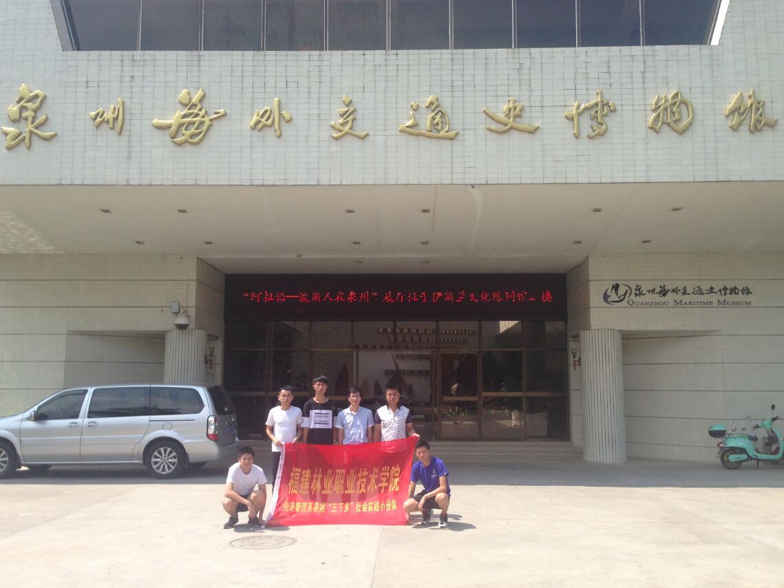 为深入学习宣传贯彻习近平总书记关于青年成长成才系列重要讲话精神,组织引领广大青年学生在深入基层、了解国情、接受锻炼的过程中培育和践行社会主义核心价值观,让大学生在实践中受教育、长才干、做贡献,按照学院团委通知要求,近日,经济管理系组队赴泉州市开展主题为“保护海丝遗址,弘扬丝路文化”暑期社会实践活动。习近平提出的“一带一路”构想,其中的一路指的是“21世纪海上丝绸之路”。泉州,作为古代海上丝绸之路的起点,中西文化长期在这里交流汇聚,留存了辉耀古今的文化遗产和大量世人罕见的中外历史文化瑰宝,其在海丝文化遗产的保护和传承上具有极为突出的地位和作用。