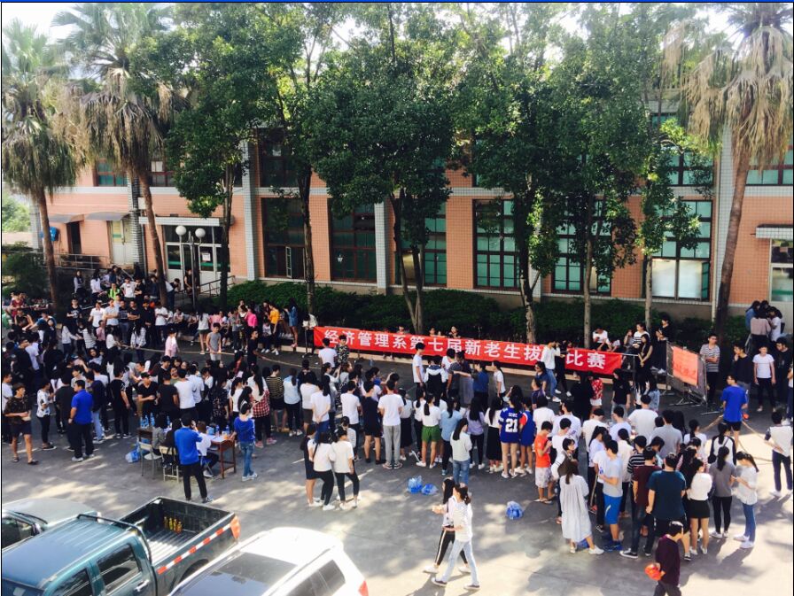 为进一步贯彻落实团中央“走下网络、走出宿舍、走向操场”大学生主题群众性课外体育锻炼系列活动要求,引导学生乐于学习、注重运动、健康生活,2016年10月16日,经济管理系第七届新老生拔河比赛在天麟校区礼堂前广场如期开展,经济管理系2015级和2016级共23个班级学生参加了此次比赛。