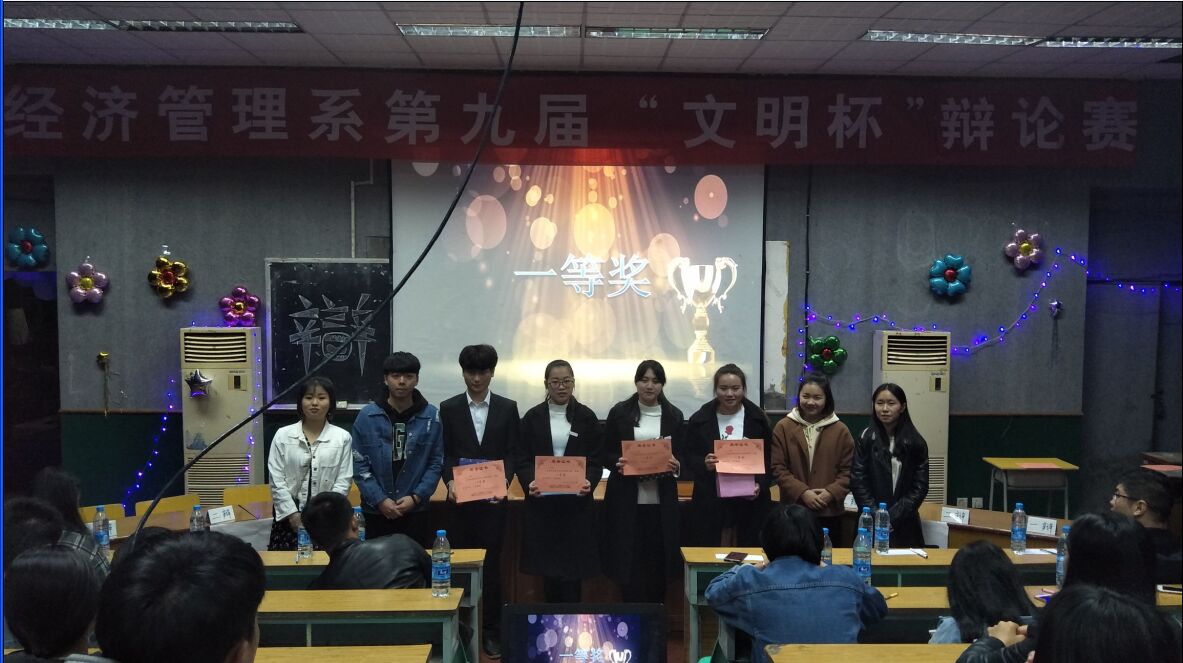 3月28日,经济管理系第九届“文明杯”校园辩论赛在天麟校区第一多媒体教室举办。经过一个月初赛、复赛的激烈角逐后,共有4队组合脱颖而出,进入辩论赛决赛。本次辩论赛旨在加强学风建设,促进各班学风交流,丰富同学课余生活,活跃校园气氛,开拓同学思路,体现大学生风华正茂的精神状态。