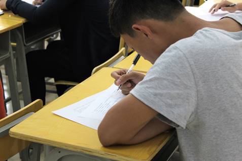 竞赛开始前,我系宿管部和女生部工作人员已提前就位,分发好试卷并维持考场秩序。下午3点30分,参赛者们准时进入考场入座,伴随着开场铃声响起,每个选手开始奋笔疾书。整场考试过程中,工作人员尽职尽责监考,参赛选手们专心致志地答题,把自己对培养良好宿舍安全行为的理解写于试卷上,展现了当代学生积极向上的精神面貌。