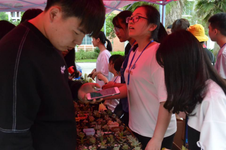 活动开始前一周,各部门成员便着手准备工作,从植株的移植、盆栽的初期维护以及活动的宣讲,均早早完成。工作人员开始布置场地,在人工湖前摆好桌椅,搭起展板,张贴海报条幅,将400盆多肉盆栽从大棚搬移到活动现场。当日中午14时30,落地活动开始,午休的学生们接踵而至,纷纷参与进活动中来。越来越多的同学排起长队领种子。