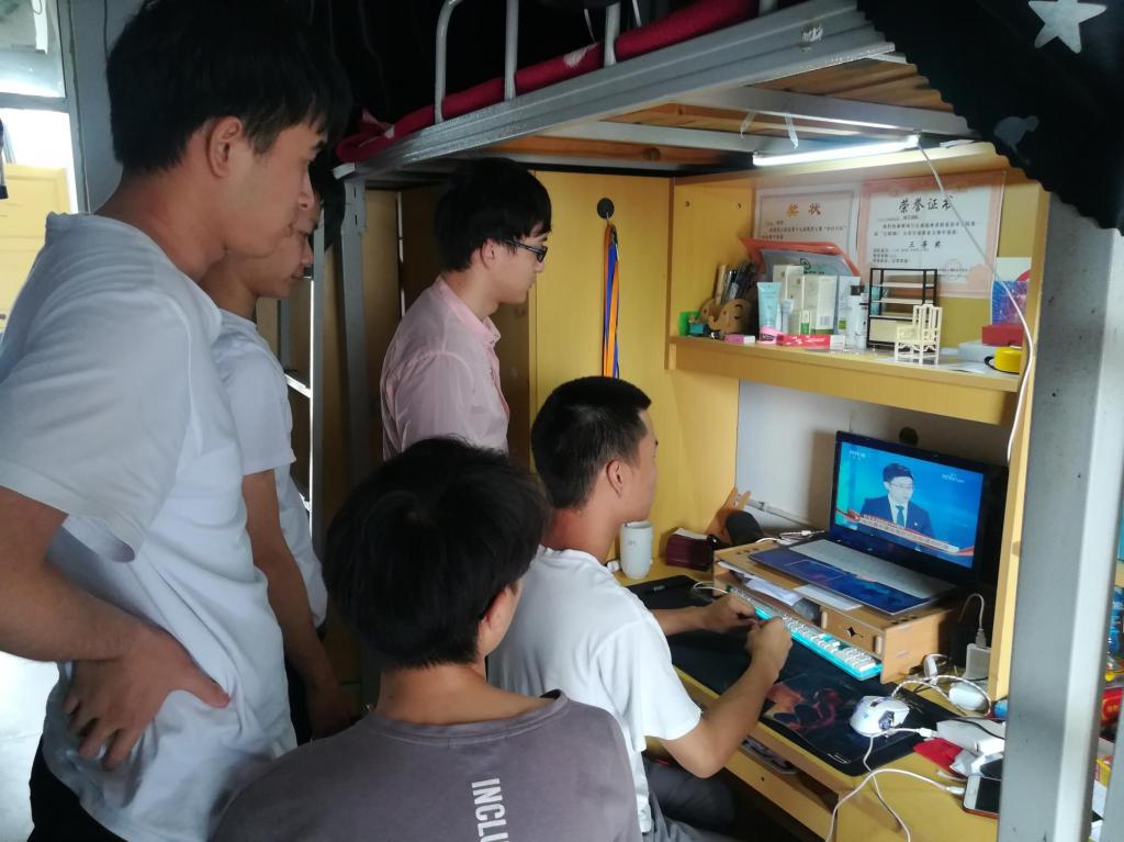 建筑工程系党总支组织教工党员、学生党员及各班级学生在实训一五楼会议室、教室及学生宿舍通过实时网络直播的形式集中收看了大会盛况,在此过程中,师生们怀揣着激动的心情认真聆听习近平总书记的重要讲话,学习领会习近平总书记的重要讲话精神。