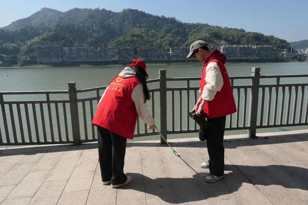 启动仪式结束后,“河小禹”志愿服务队沿闽江水东街道玉屏社区段开展巡河活动。春阳下的他们自成风景——“河小禹”们手持垃圾夹、环保袋,沿着河道细致清理烟头、塑料瓶等污染物。队员们发扬"不怕脏、不怕累"的雷锋精神,用脚步丈量责任,让我们的母亲河焕发新颜。汗水浸透的后背,恰似雷锋日记里“愿做高山岩石之松”的生动写照。