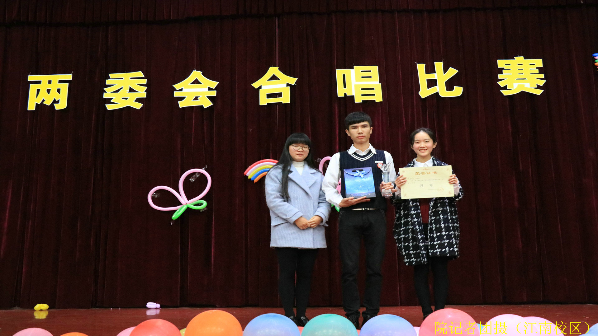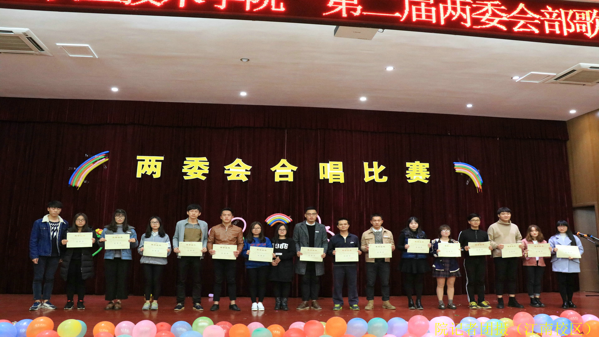 11月27日晚7时,我院学生会在江南礼堂举行第二届两委会部歌比赛,此次活动团委会办公室承办、学生会文艺部协办。出席此次活动的有学生会主席兰雄、学生会副主席檀嘉怡、团委副书记郭小玲及团委会学生会18个部门的学生干部干事。此次活动由高旭和吴媛主持。