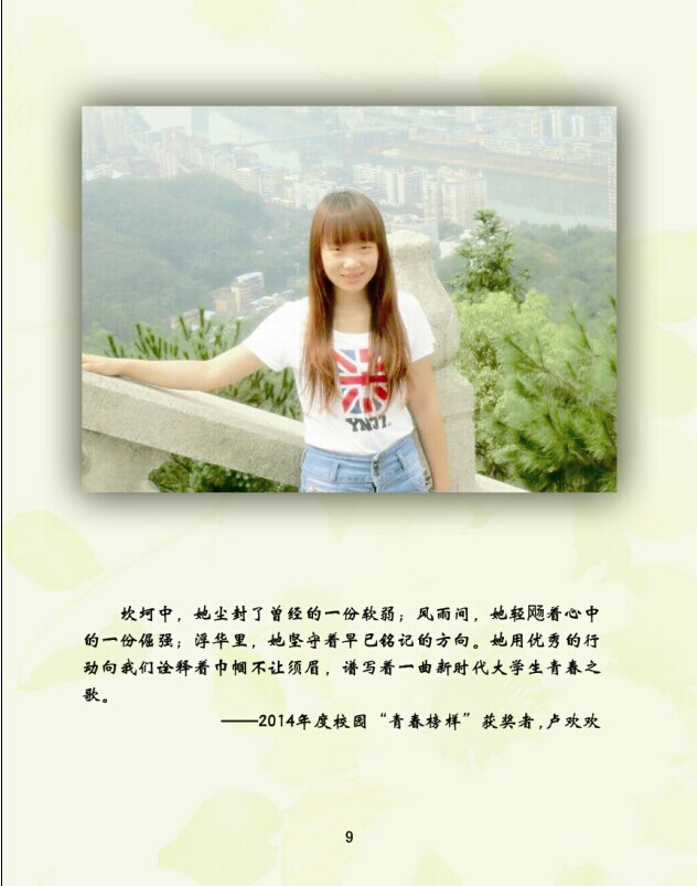 为大力推进我院学生思想教育工作,以身边榜样引领学生成长成才,展现我院学生自强不息、奋发向上的精神风貌,发挥榜样示范作用。2014年3月,院团委启动“青春榜样”人物评选活动,在全院范围内掀起了一股发现校园里的美——寻找校园“青春榜样”热潮。通过校园“青春榜样”评选,在广大学生中充分发掘奋发进取、无私奉献的典型人物,发现校园里的美,以先进的事迹感染人、以进取的精神激励人、以身边的榜样引导人,充分展示我院学生风采,为实现学校持续、健康、有序、高效发展提供强大的精神动力。