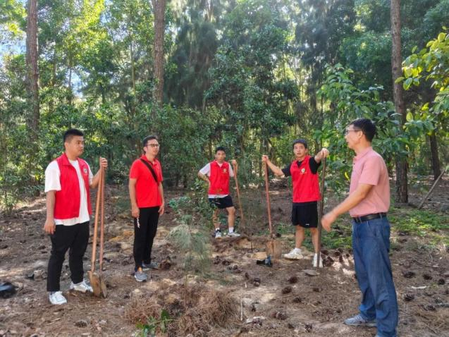 “长青”实践小分队在参观完谷文昌纪念馆后前往东山县赤山国有林场,践行弘扬谷文昌精神,深刻领悟谷文昌植树精神和背后感人故事。在赤山国有林场工作人员指导下,一起挥锹铲土、扶树填坑、踏土夯苗、提桶浇水,大家干劲十足、分工协作、配合默契,认真细致地完成每一道工序,精心种下一棵棵木麻黄树苗,用双手感受谷书记当年带领东山人民绿化全岛的艰辛,用实际行动践行谷文昌精神。