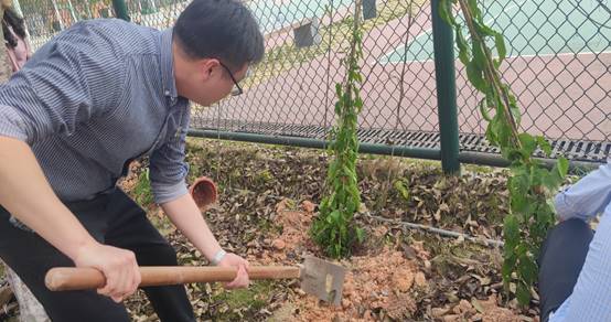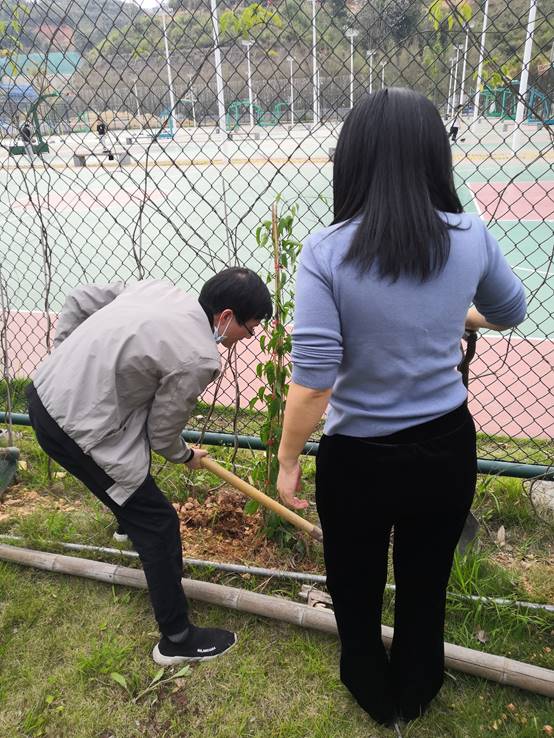 启动仪式后,各党员到指定植树点进行植树。植树现场一派热火朝天,师生们干劲十足,配合默契,在专业教师的指导和学生志愿者的帮助下分工协作,扛苗散苗,挥楸铲土,扶苗踏实,到处都是忙碌的身影。大家不顾鞋裤上的泥土,一起挥锄扬锹,把一棵棵树苗稳稳地栽好,用自己的行动和汗水充分展现了林职院师生的良好风貌与责任担当。团委党支部活动区域位于江南室外篮球场周边。
