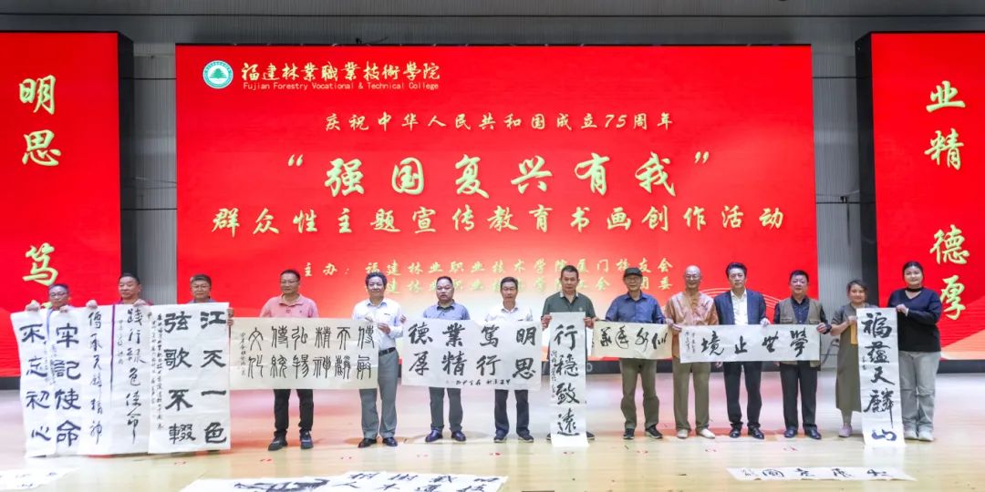 为庆祝新中国75周年华诞,弘扬中华优秀传统文化,厚植青年爱国主义情怀,更好地培育和推动中华优秀传统文化建设。2024年11月5日下午15:00,我院于江南校区体育馆举行庆祝中华人民共和国成立75周年“强国复兴有我”群众性主题宣传教育书画创作活动。本次活动由福建林业职业技术学院厦门校友会、工会、团委共同主办,院社团联合会书画协会协办。