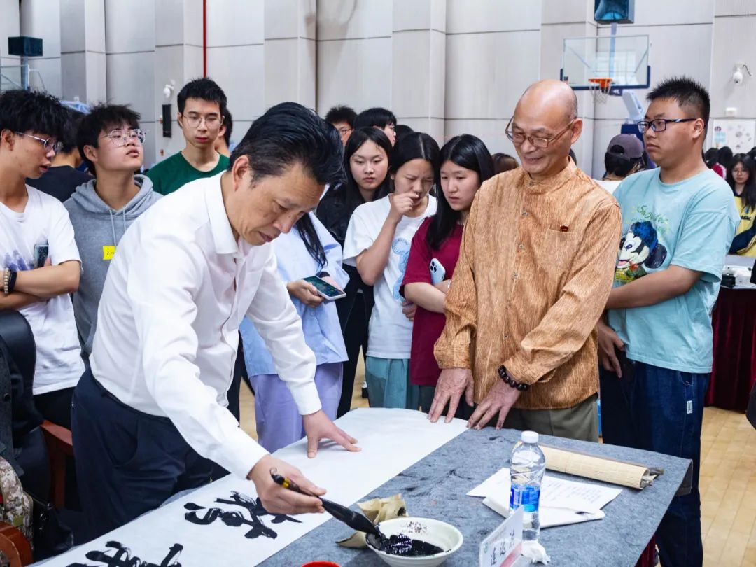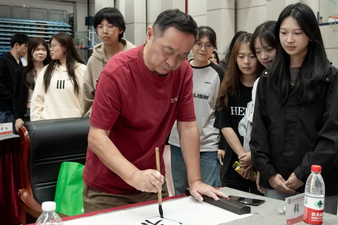 本次活动特别邀请了学院校友总会副会长兼厦门校友会会长张瑞清,中书协会员、厦门民盟美术院原院长、厦门市人大书画院副秘书长苏宜尹,福大工艺美院原美术教授、中美协会员曾华伟,中书协会员兼厦门画院原专职画家谢荣仁,南平市书协副主席、福建省书协会员、中国书协南平考级基地执行主任张明,厦门市人大书画院执行秘书长、《中国报道》海峡两岸经济栏目福建联络处主任、厦门市美术家协会会员连达洪及多位福建省在延书画家莅临现场挥毫泼墨,带领我院学子一同感受中国传统书法及绘画的魅力。我院副院长、校友会总会会长李肇锋,党政办公室主任陈政,工会常务副主席廖世建,团委副书记雷栩艺(主持工作)及学生代表共300余人参加本次活动。