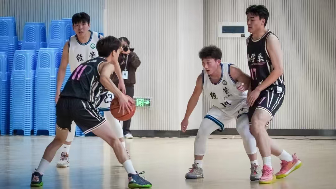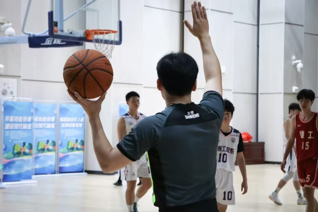赛场之上,声声哨音仿若冲锋号角,催使运动员们全力投身战斗。队员间心有灵犀,运球时灵动敏捷,如行云流水;传球时精准无误,似穿针引线;投篮时一气呵成,恰百步穿杨。每一个动作都凝聚着汗水与智慧,展现我院学子积极向上、勇于拼搏的青春风貌。