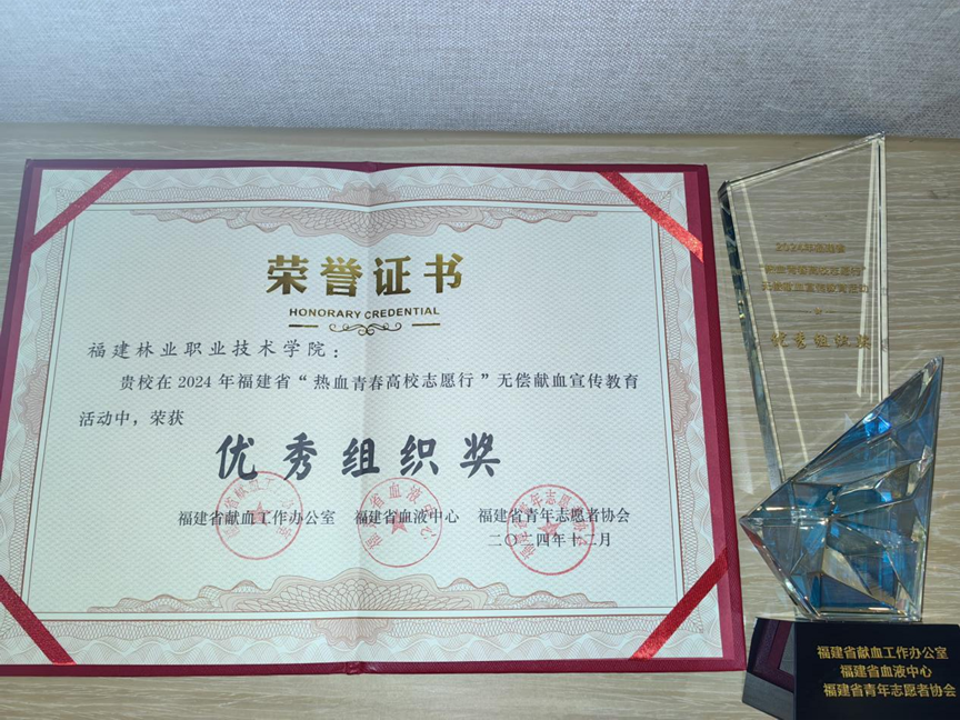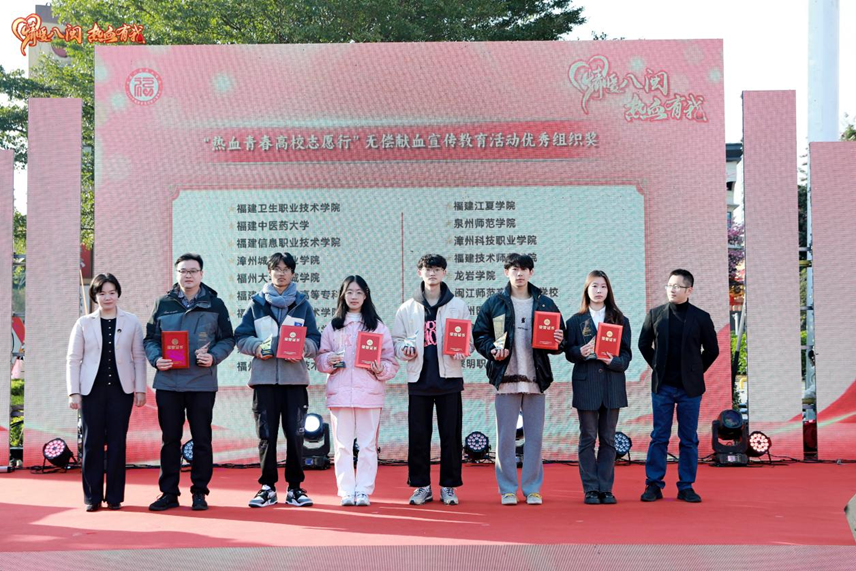 为贯彻落实《福建省献血条例》,弘扬无私奉献精神,引领社会良好风尚,2024年12月21日下午,由福建省卫生健康委员会、福建省教育厅、共青团福建省委主办的“情暖八闽热血有我”2024年福建省无偿献血宣传月活动暨“热血青春高校志愿行”颁奖仪式在福州举行。