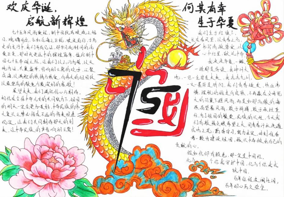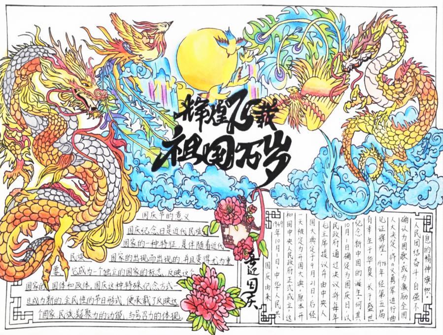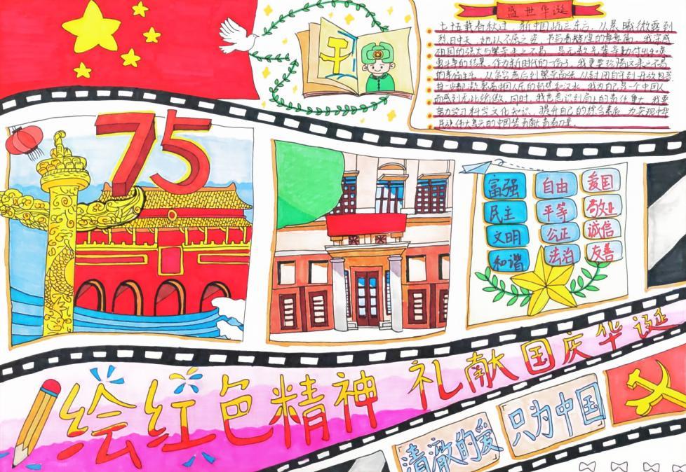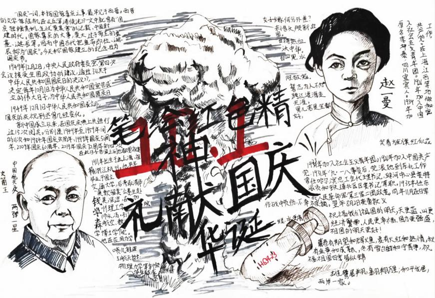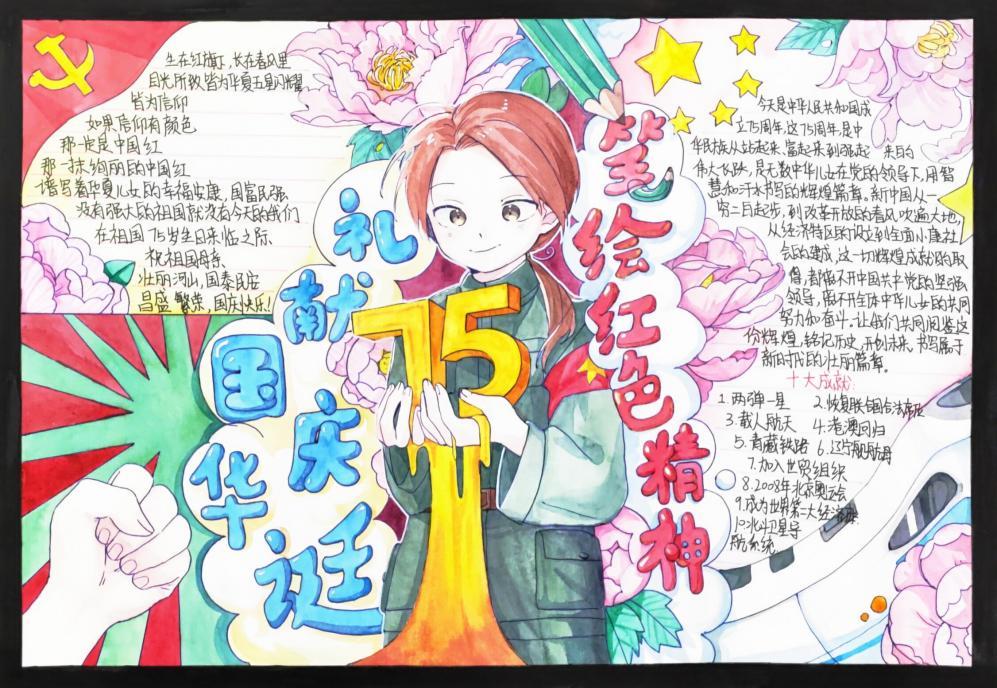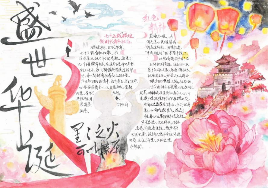 为庆祝新中国成立75周年,弘扬爱国主义精神,增强国家意识和民族自豪感,同时激励人们为实现中华民族伟大复兴的中国梦而奋斗,院勤工助学部特别推出了“笔绘红色精神,礼献国庆华诞”手抄报活动。