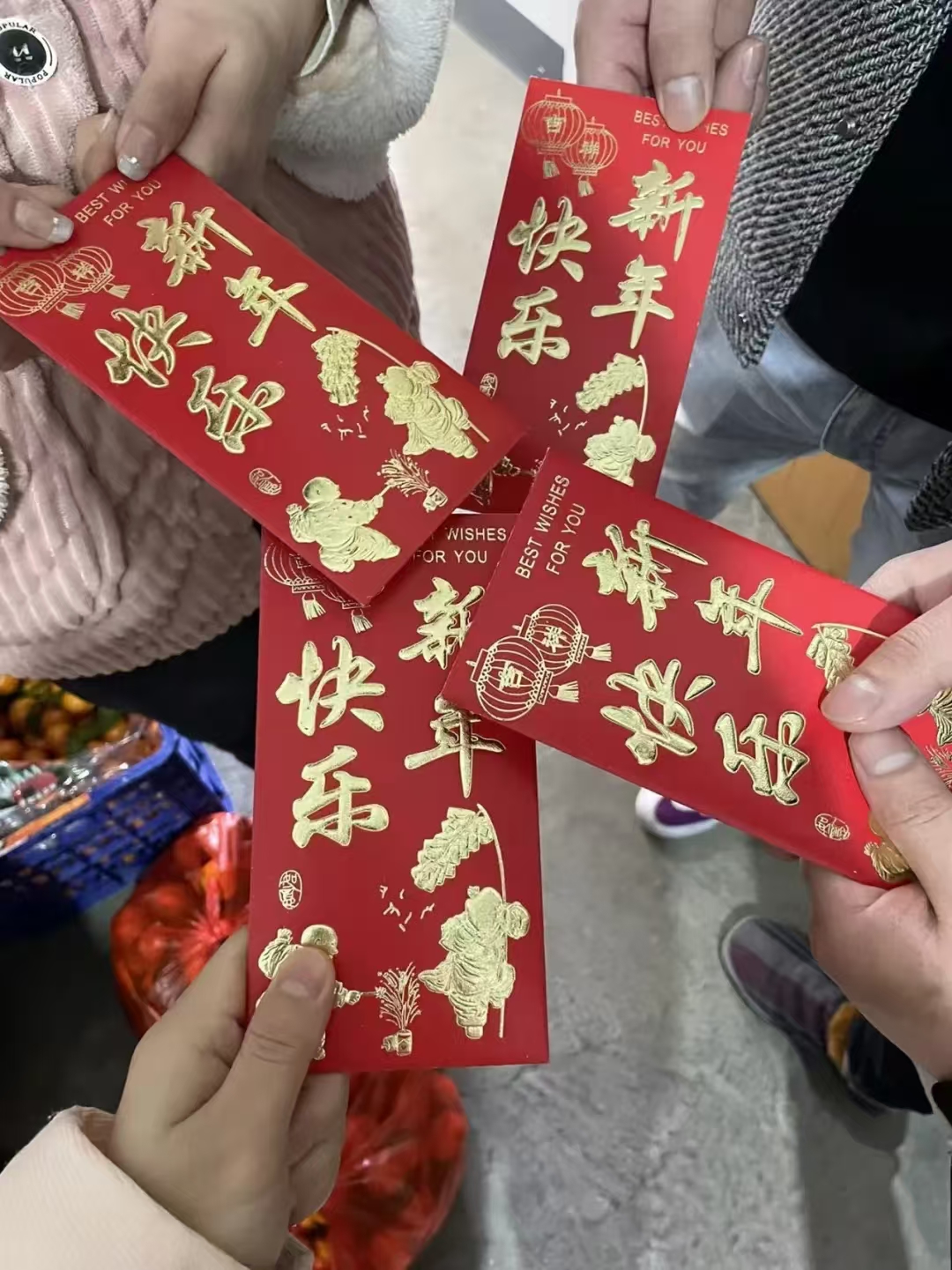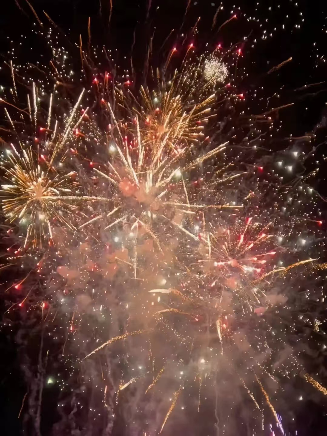 此日,全家团聚。小孩子收到了亲人给的压岁钱,老人见到了长时间在外的孩子,一家人相伴于喧嚣爆竹中,于窗外绚烂的烟花之下,迎接新的一年。