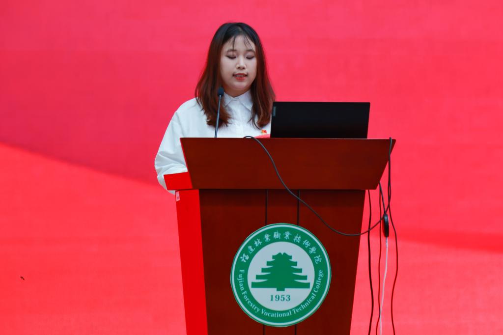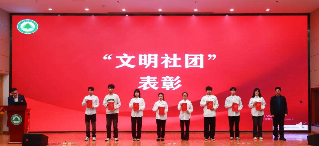 ▲学生工作部部长陈友益宣读《福建林业职业技术学院关于表彰2023-2024学年文明社团、社团优秀会长、学生社团工作积极分子的决定》文件