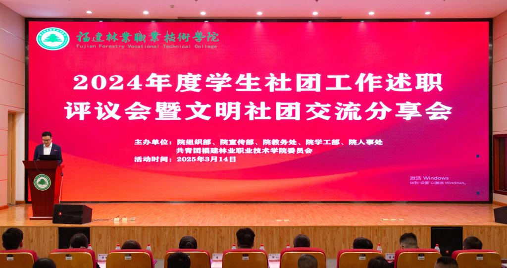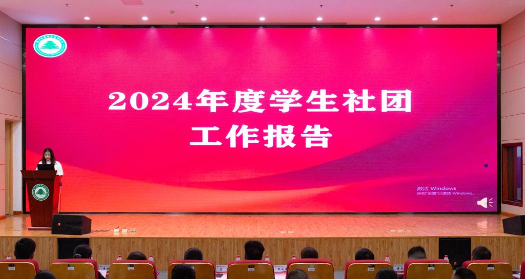 院学生社团联合会轮值主席范文菲以《在新时代的伟大实践中贡献社团青春力量》为题作2024年度福建林业职业技术学院学生社团的工作报告。报告从健全制度保障体系、激发社团育人功能、正视问题精准施策、守正创新勇毅前行四个方面,汇报了学生社团2024年工作情况,并对新学年的社团工作部署情况做了说明。