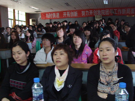 3月29日下午,由院团委主办,学习部承办,宣传部协办的“中国青年创业国际计划(YBC)暨共青团大学生创业孵化体系政策”讲座在阶梯教室举办。讲座由南平市德妹贸易有限公司董事长郑德妹女士主讲,团委副书记叶世森老师出席了讲座。大约150名同学到场聆听。