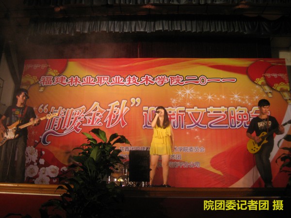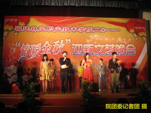 9月27日晚7点30分由院团委主办、院学生会文艺部、外联部承办、中国电信股份有限公司南平分公司、80视觉婚纱摄影、一百分造型、雅特兰食品公司、完善玛丽艳南平服务部、旺众百货协力的“情暖金秋”迎新文艺晚会于礼堂举行。到场嘉宾有党委副书记兼纪委书记刘明、团委副书记叶世森等七位老师。天麟校区所有新生到场观看。