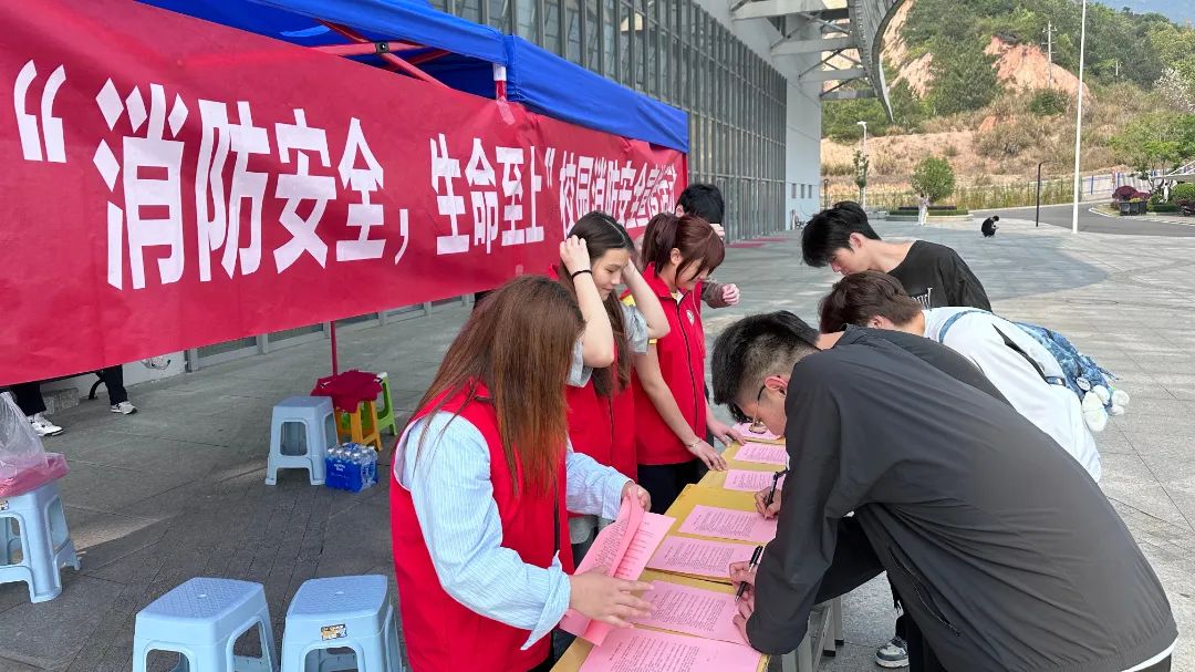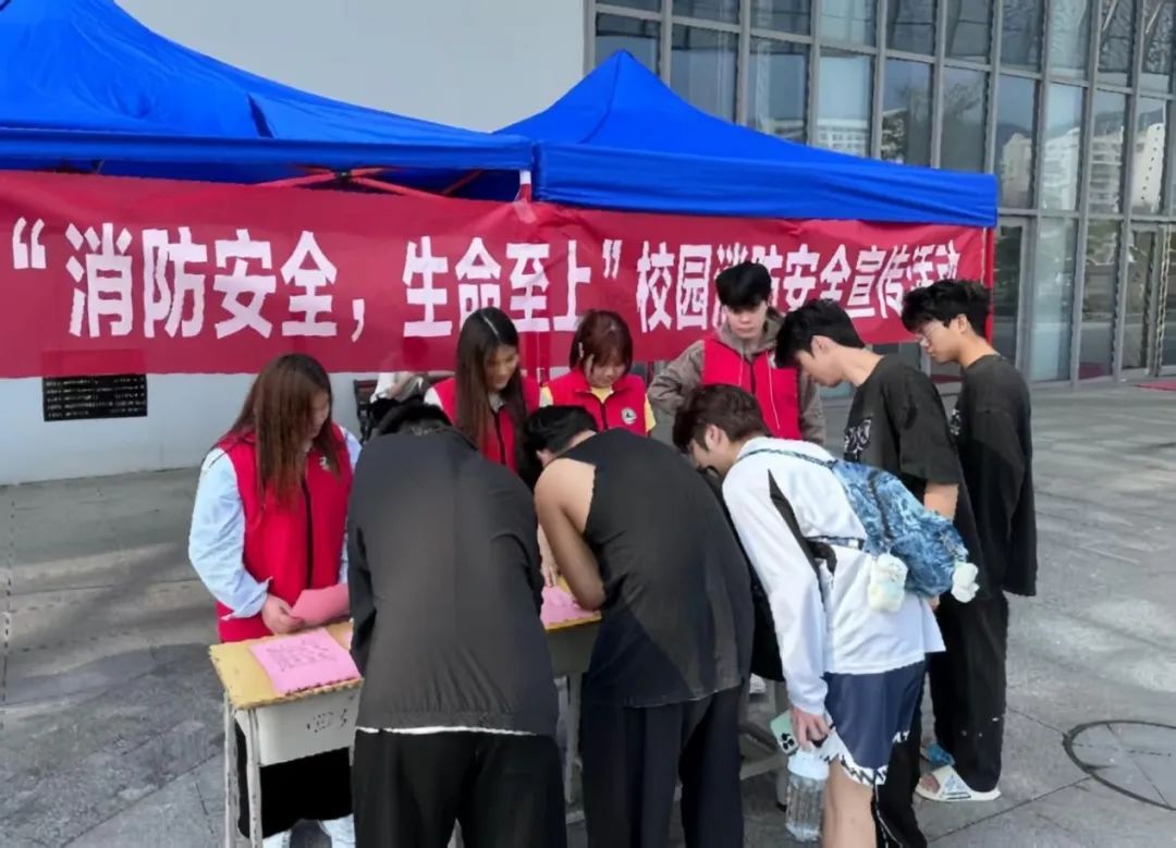 在志愿服务队的引导下,同学们仔细阅读倡议书后,纷纷自愿在倡议书和横幅上签名,还有不少同学写下了消防安全警示语,表达自己对消防安全的重视和承诺。