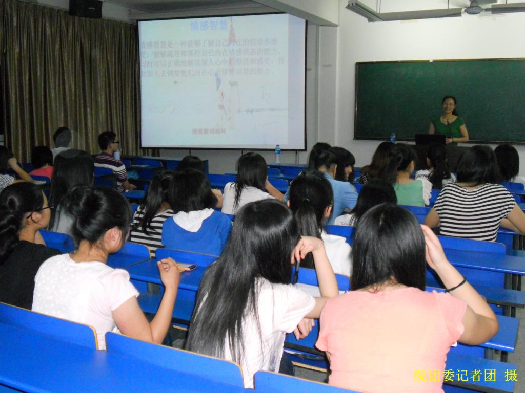 5月17日晚7点30分,由院社团部主办,心连新协会承办的以“发展情感的智商,做情绪的主人”为题的第五届5.25大学生心理健康月心理讲座在科教楼602开展。人文社科系团总支书记心理教师陈红英老师担任讲师。约有150名学生到场聆听。