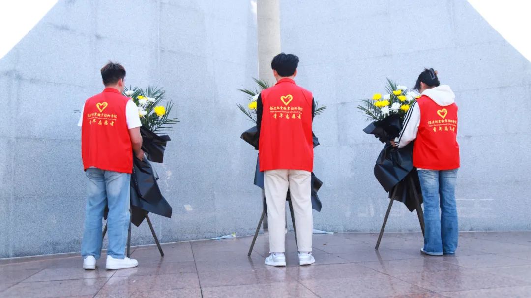 院学生会轮值主席邓昊同学、余松晨同学,院志愿服务部陈袁柳同学代表青年敬献花篮,寄托着新时代青年对英烈的无限追思。